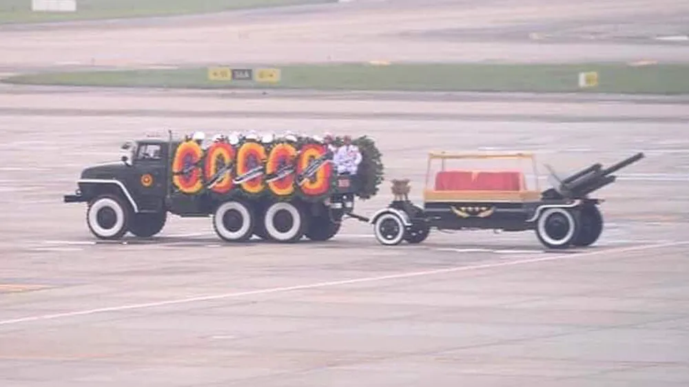 * Trước đó, vào khoảng thời gian trước Lễ truy điệu tiễn đưa nguyên Chủ tịch nước Lê Đức Anh, cơn mưa buổi sáng đã tạnh. Đội nghi lễ hoàn tất những khâu chuẩn đoàn xe tang và cỗ linh xa để đưa nguyên Chủ tịch nước Lê Đức Anh ra sân bay.