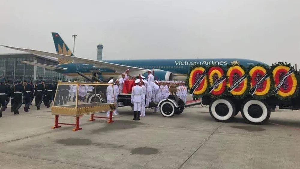 Linh cữu nguyên Chủ tịch nước dự kiến sẽ được đưa từ sân bay Nội Bài vào TPHCM trên chuyến bay thương mại của Vietnam Airlines VN 237, dự kiến cất cánh lúc 12 giờ 30 cùng ngày.