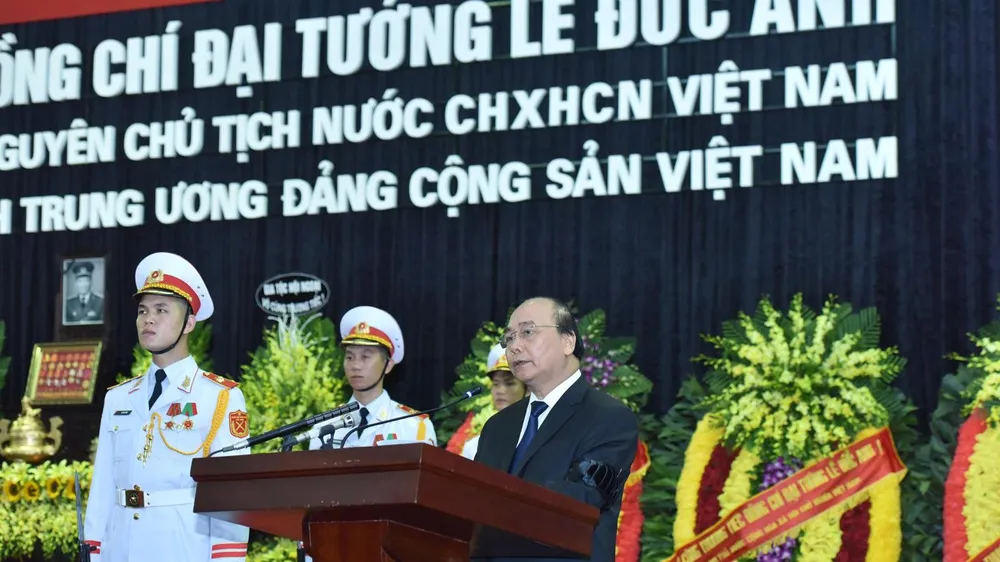 Trong điếu văn, Thủ tướng Nguyễn Xuân Phúc bày tỏ trong niềm xúc động, tiếc thương vô hạn, Đảng, Chính phủ, toàn thể nhân dân đã đến tiễn đưa nguyên Chủ tịch nước Lê Đức Anh về nơi an nghỉ cuối cùng.