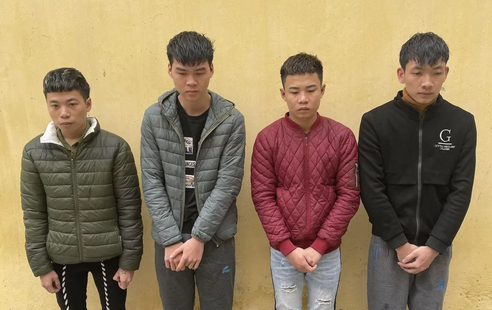Sau một thời gian điều tra, Công an huyện Thọ Xuân đã bắt giữ 4 đối tượng đang trú tại huyện Ứng Hòa (TP Hà Nội), gồm: Đỗ Xuân Quang (24 tuổi), Đỗ Đức Trung (21 tuổi), Đỗ Ngọc Trung (24 tuổi), cùng trú xã Tảo Dương Văn và Phạm Trung Anh (23 tuổi, trú xã Hòa Lâm).