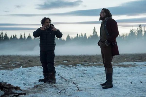 Đạo diễn Alejandro González Iñárritu và diễn viên Leonardo tại phim trường The Revenant
