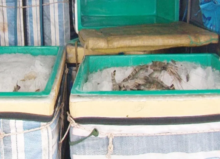Qua kiểm tra, lực lượng làm nhiệm vụ phát hiện phương tiện đang vận chuyển 7 thùng xốp chứa khoảng 200kg tôm có tạp chất là CMC (chất tạo đặc, tạo nhớt).