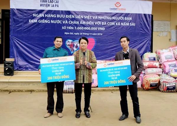 Ngày 26-11, LienVietPostBank và các nhà tài trợ đã tặng Nậm Sài 48 giếng nước (trị giá mỗi giếng 20 triệu đồng) và tặng 150 chăn ấm, gạo và tiền mặt cho các hộ nghèo và học sinh của xã với tổng trị gía 1,060 tỷ đồng. Trong đó, riêng LienVietPostBank tài trợ 400 triệu đồng gồm đào mới 15 giếng khoan; tặng quà cho 50 hộ nghèo; tặng 120 chăn ấm cho giáo viên và học sinh tại 2 điểm trường Tiểu học và THCS xã Nậm Sài trị giá 100 triệu đồng.