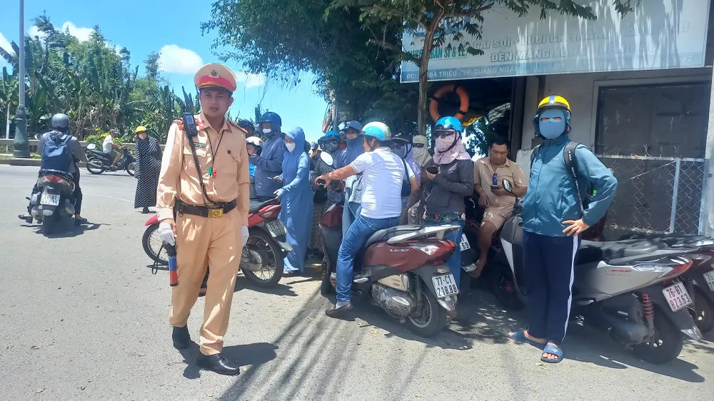 Cảnh sát giao thông có mặt điều tiết phương tiện qua lại TP Quảng Ngãi