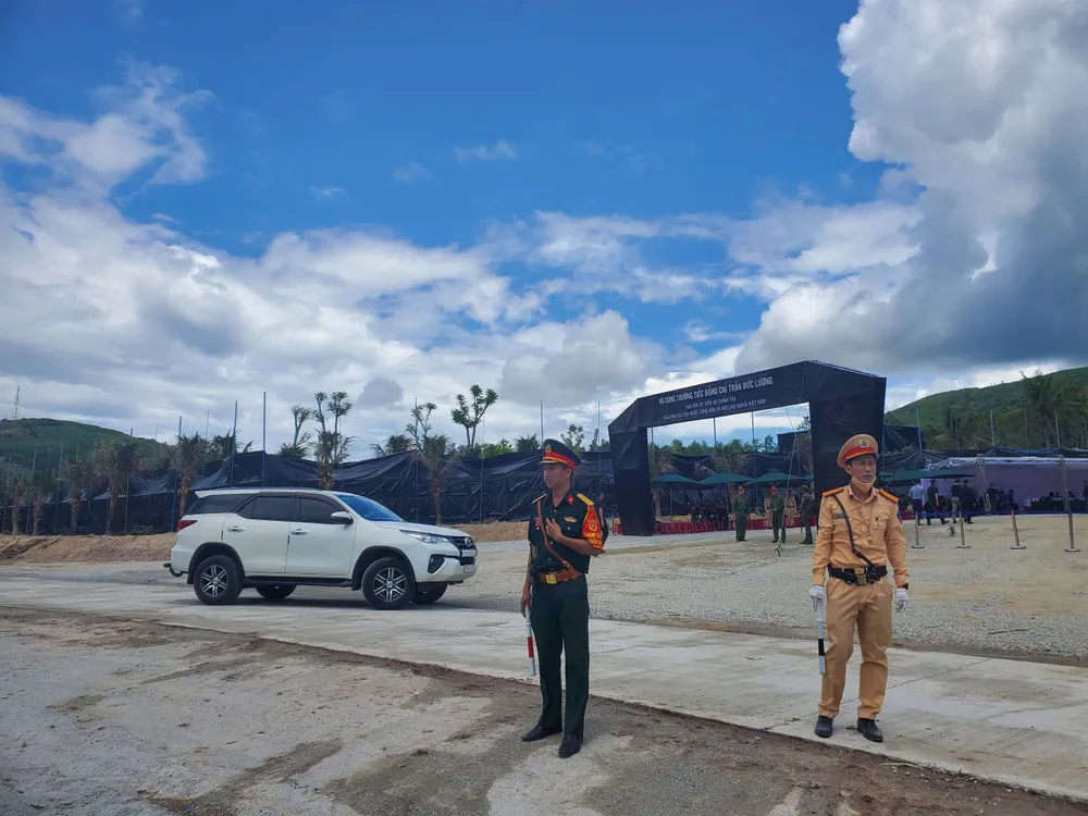 Đông đảo cán bộ, chiến sĩ, học sinh, sinh viên và người dân địa phương đã có mặt để chuẩn bị đón linh cữu nguyên Chủ tịch nước. Công tác an ninh được đảm bảo, các phương tiện di chuyển vào khu vực được hướng dẫn phải đi theo một lối vào và một lối ra.