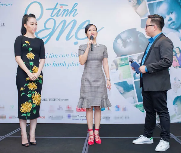Nghệ sĩ Linh Nga, ca sĩ Hồng Nhung và MC Tùng Leo phát biểu tại sự kiện