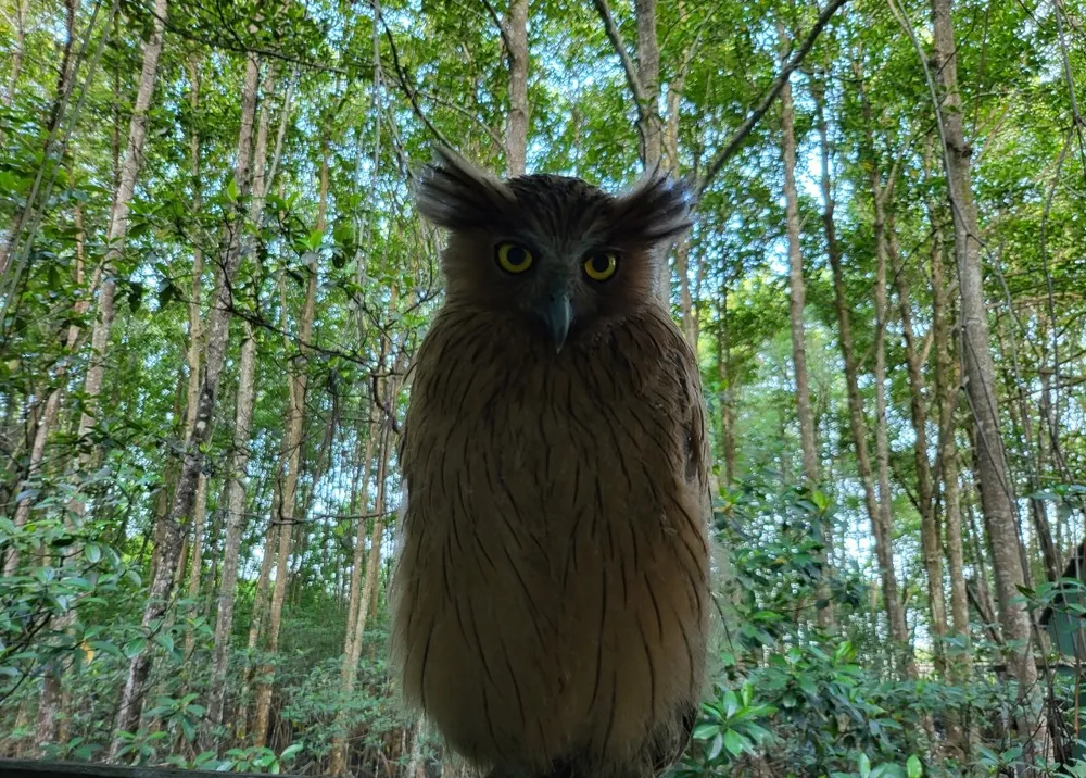 Theo ông Dũng, gần một năm trước, ông cùng đồng nghiệp đang đi kiểm tra rừng thì gặp mưa dông. Lúc này phát hiện chim cú cá con trên tổ rơi xuống đất bùn. Thấy vậy nên ông đem về khu nhà hành chính của vườn bỏ vào lồng dưỡng nuôi.
