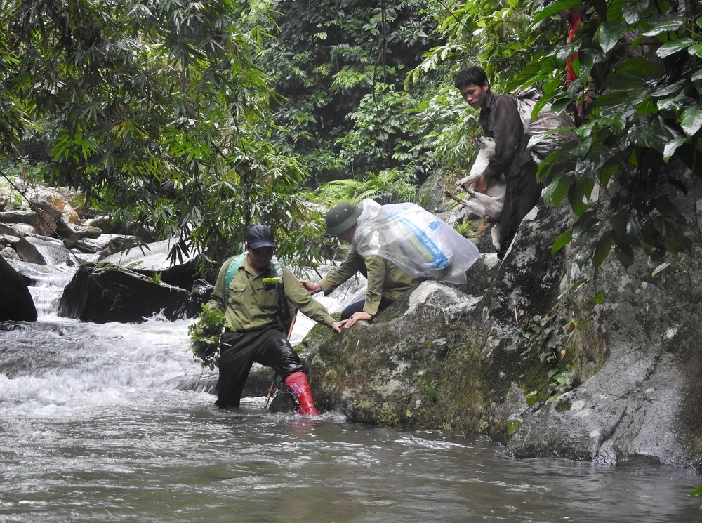 Mỗi chuyến “lội” rừng kéo dài ít nhất 7 ngày, có khi từ 10 đến 12 ngày. Mỗi nhóm đi khoảng 6 đến 8 người, gồm lực lượng bảo vệ rừng chuyên trách và kiểm lâm của Vườn Quốc gia Pù Mát.