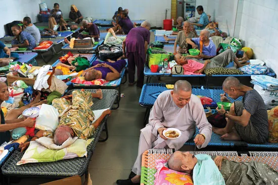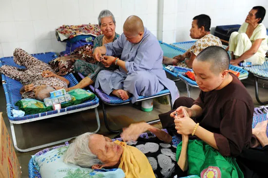 Hàng ngày, các ni sư cùng phật tử chăm lo việc ăn uống, tắm rửa, giặt giũ, thuốc thang... cho các cụ già - những người vì tuổi cao sức yếu hoặc bệnh tật mà không thể tự chăm sóc bản thân được. Hành động ấy đầy ý nghĩa, thiết thực và giàu tính nhân văn. Để có kinh phí chăm sóc cho các cụ già, những ngày đầu các ni sư phải làm nhiều việc từ làm nhang, nấu các món chay để bán… cùng sự đóng góp của các phật tử, các nhà hảo tâm xa gần. Ni sư Thích Nữ Huệ Tuyến đã nhiều lần được UBND TPHCM tặng bằng khen.
