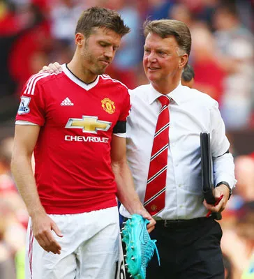 Louis van Gaal trao đổi khá thân mật với đội phó Michael Carrick.