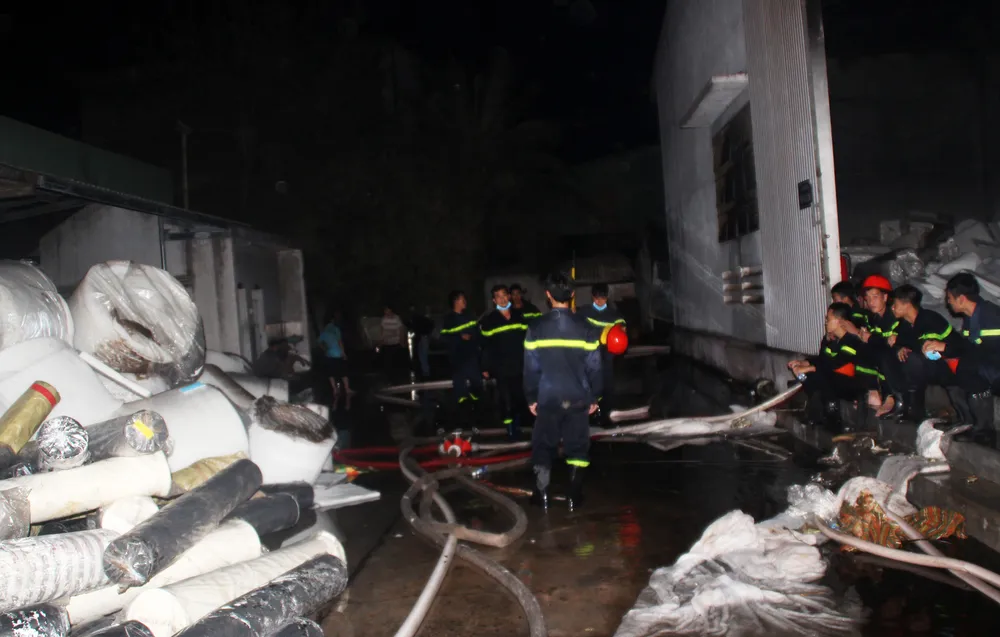 “Đến 19 giờ 19 phút, nhận được tin báo cháy chúng tôi đã nhanh chóng triển khai, huy động lực lượng gồm: 10 xe cứu hỏa và trên 80 chiến sĩ đến hiện trường để dập lửa. Đám cháy được khống chế vào khoảng 8 giờ 30 đến 9 giờ là được dập tắt hoàn toàn, không cho lan sang các xưởng khác”, Đại tá An cho hay.