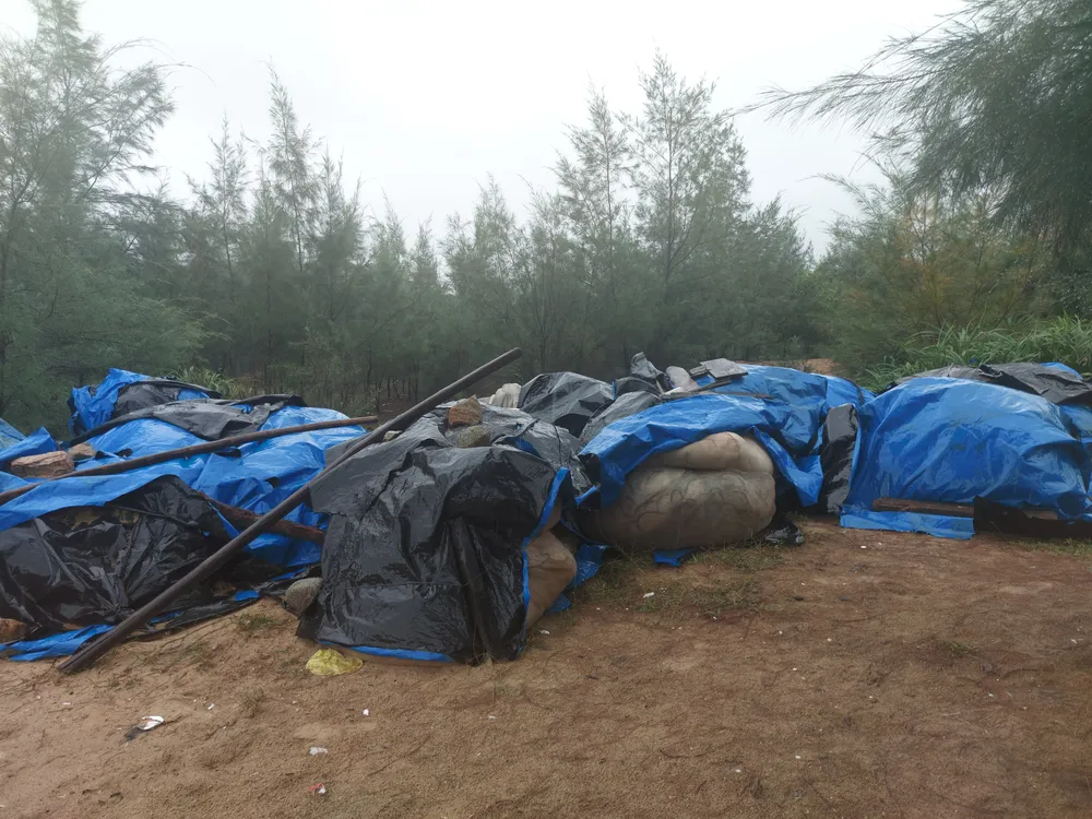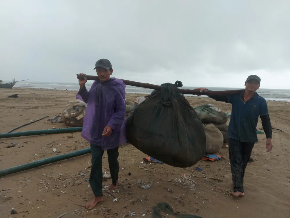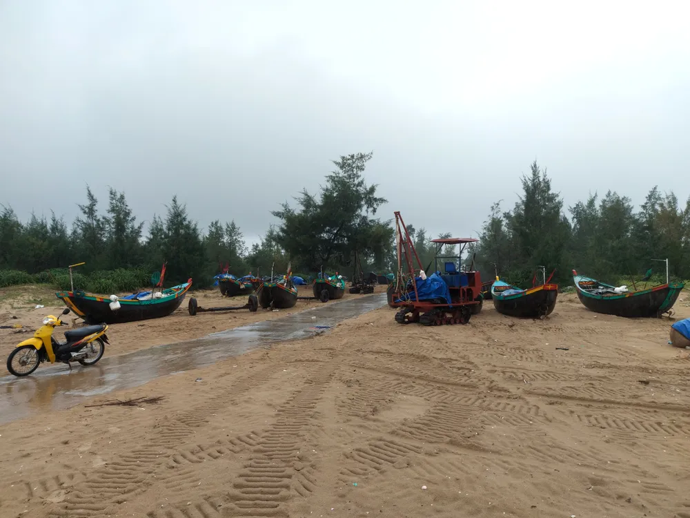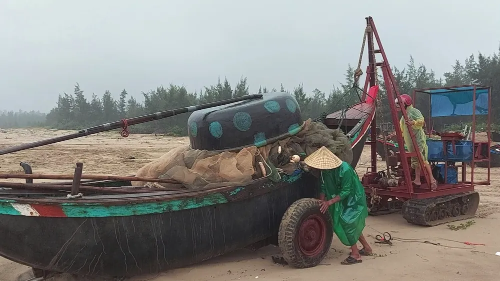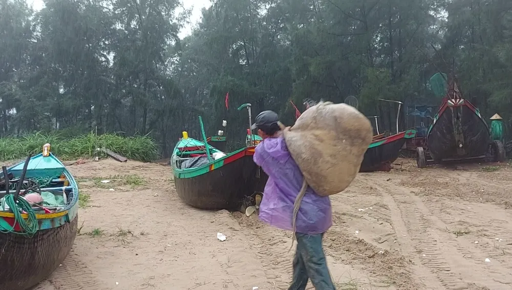 Nhiều ngư dân cũng thu cất ngư lưới cụ, phương tiện đánh bắt, đem về nhà tại tuyến đường Võ Nguyên Giáp (quận Sơn Trà, TP Đà Nẵng)