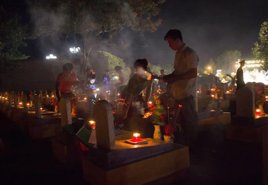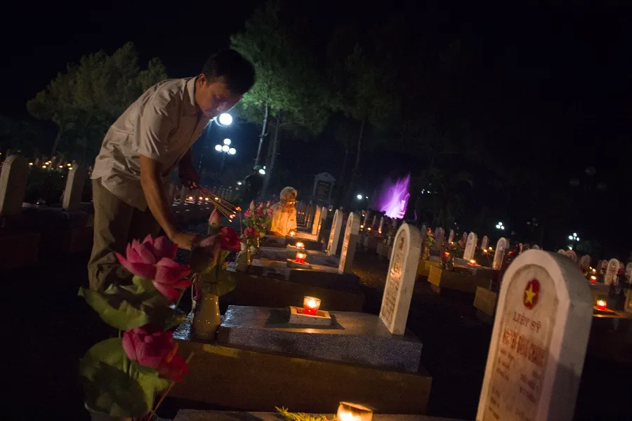 Lung linh những ngọn nến được thắp lên tại nghĩa trang liệt sĩ đường 9 nơi ghi danh hơn 10.000 liệt sĩ trong cả nước
