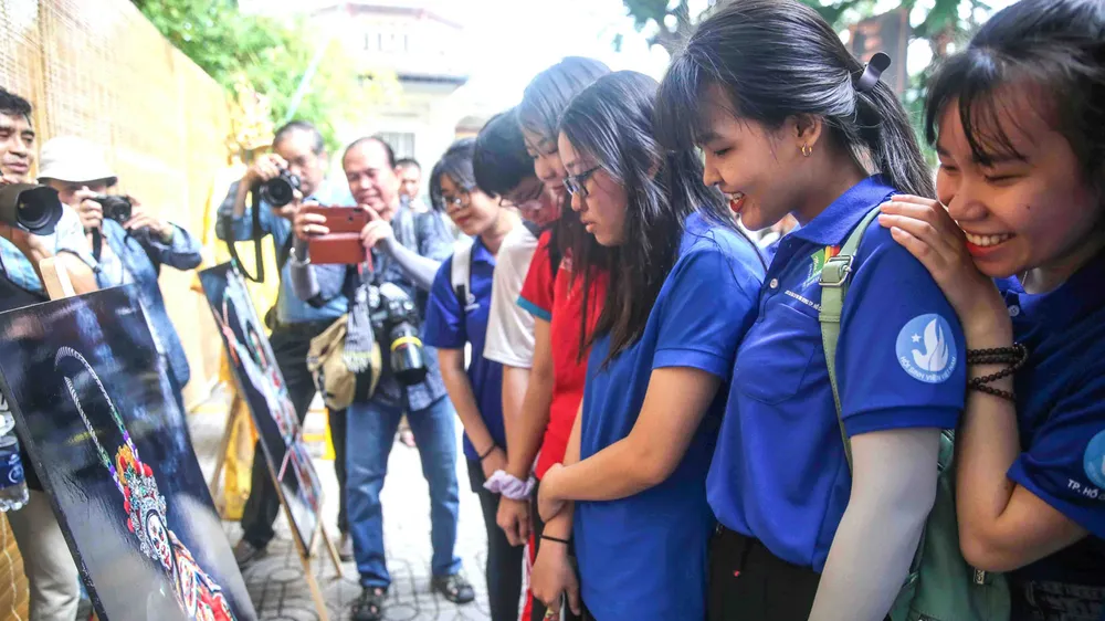 Sinh viên Trường Cao đẳng Sư phạm Trung ương TPHCM xem trưng bày mặt nạ hát bội