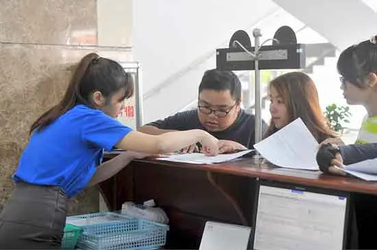 Nhân viên Cục Thuế TPHCM hướng dẫn làm hồ sơ khai thuế. Ảnh: CAO THĂNG