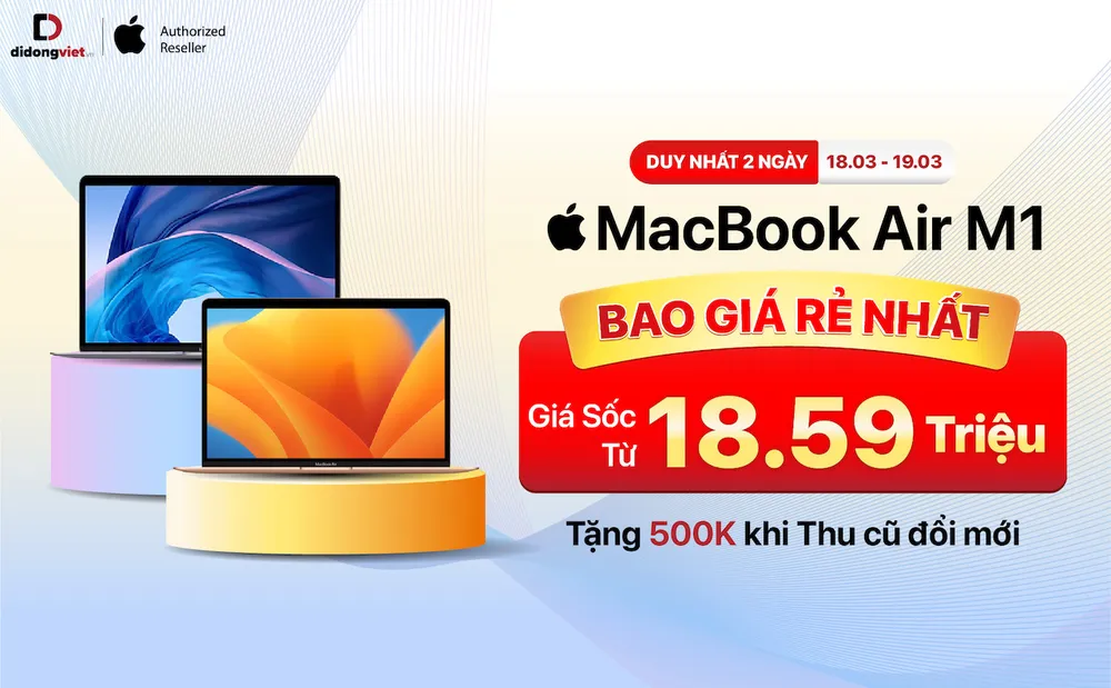 Được biết thêm, trong đầu năm 2023, MacBook Air M1 vẫn luôn mẫu MacBook bán chạy nhất tại Di Động Việt, chiếm hơn 50% số bán các dòng MacBook nói chung. Trong đó, màu xám là phiên bản màu sắc bán chạy nhất của MacBook Air M1 khi chiếm hơn 41%. Tiếp đến là màu vàng chiếm khoảng 30% và màu bạc chiếm hơn 27%.