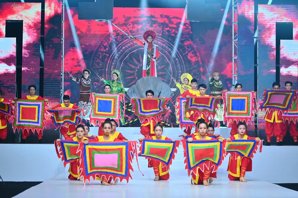 Trích đoạn “Tiếng trống Mê Linh” được đưa vào show trình diễn BST "Áo dài quốc phục"