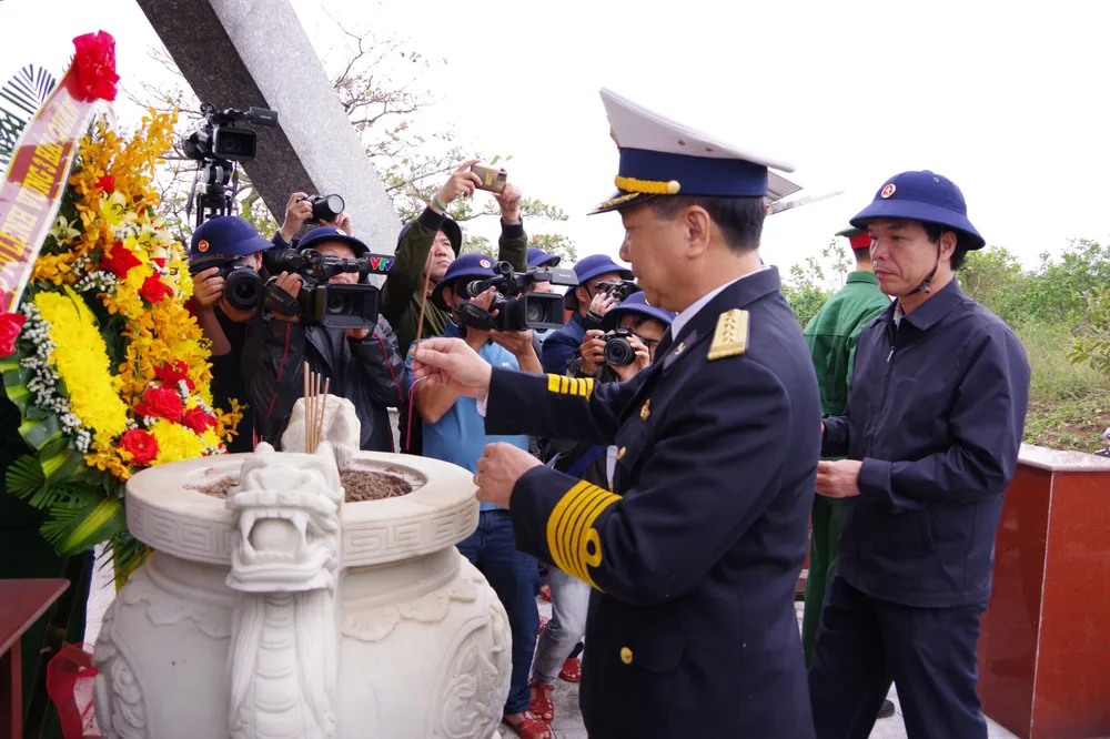 Đoàn công tác dâng hương tại Đài tưởng niệm các anh hùng liệt sĩ tại Đảo Cồn Cỏ |
