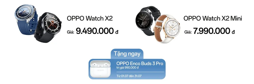 Bộ đôi OPPO Watch X2 và OPPO Watch X2 Mini đại diện cho sự kết hợp hoàn hảo giữa thiết kế thanh lịch, độ bền vượt trội và tính ứng dụng cao, mở ra chuẩn mực mới cho dòng đồng hồ thông minh cao cấp của OPPO.