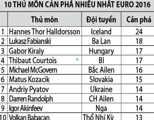 Manuel Neuer là thủ môn để lọt lưới ít nhất, và có nhiều trận sạch lưới nhất ở EURO 2016. Tuy nhiên, anh không thể sánh với nhiều thủ môn khác về số tình huống cứu thua và các pha phản xạ. Vì sao?