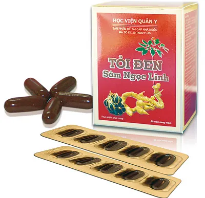 Tiếp thu và ứng dụng các công trình nghiên cứu cấp Nhà nước, kết hợp với công nghệ hiện đại, Học Viện Quân Y VN đã sản xuất thành công Viên nang mềm Tỏi Đen - Sâm Ngọc Linh có hiệu quả cao trong việc tăng cường sức khỏe và ngăn ngừa bệnh tật. Sản phẩm kết hợp Tỏi đen và Sâm Ngọc Linh cùng với các vitamin tạo nên tác dụng hiệp đồng trong việc: Bồi bổ sức khỏe, giảm mệt mỏi, giúp ăn ngủ tốt, thúc đẩy tiêu hóa. Giúp giảm mỡ máu, ngăn ngừa xơ vữa động mạch, phòng tai biến mạch máu não. Tăng cường chức năng, giải độc gan, giảm tình trạng gan nhiễm mỡ, ngừa xơ gan Giảm đường huyết, giúp phòng ngừa biến chứng tiểu đường. Chống lão hóa, chống oxy hóa tế bào. ĐT tư vấn: 0122 888 1368. Giấy XNNDQC: 366/2014/XNQC- ATTP.