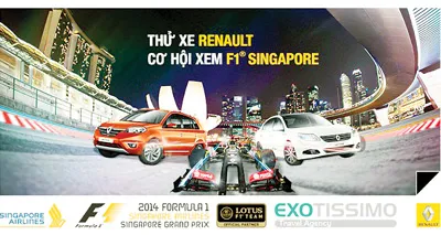Đó là thông điệp mà hãng xe ô tô Renault (Pháp) đưa ra trong chiến dịch tiếp thị toàn cầu nhằm giúp khách hàng tiếp cận các dòng xe mới nhất của hãng này. Theo đó, từ ngày 7-7 đến 24-8-2014, khách hàng lái thử xe sedan Renault Latitude hoặc Renault Koleos sẽ nhận được một phần quà của Renault và có cơ hội nhận giải đặc biệt là một chuyến du lịch trọn gói 4 ngày 3 đêm cho hai người tại Singapore xem Grand Prix F1 vào tháng 9 tới. Giải thưởng bao gồm vé máy bay khứ hồi với Singapore Airlines, khách sạn 5 sao, xe đưa đón đến khách sạn… Được biết, hãng xe ô tô Renault có 12 lần đoạt chức Vô địch thế giới và 11 lần vô địch thế giới tại giải Công thức 1. Hãng xe này cũng giữ kỷ lục về vị trí dẫn đầu cho nhà sản xuất động cơ. Để biết thêm thông tin, vui lòng truy cập www.renault.vn hoặc liên hệ với đại lý gần nhất tại Hà Nội, TPHCM và Vinh.