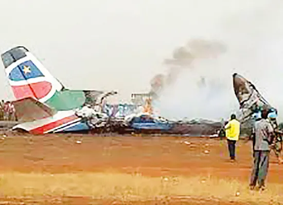 Hàng chục người có thể bị thương vong sau khi một máy bay chở 44 người rơi ở sân bay Wau tại miền Đông Bắc của Nam Sudan vào ngày 20-3 (ảnh). Theo tờ National Courier của Nam Sudan, vụ tai nạn xảy ra khi chiếc máy bay của hãng hàng không South Supreme Airlines xuất phát từ thủ đô Juba đến Wau hạ cánh xuống đường băng bị mất độ cao đột ngột.