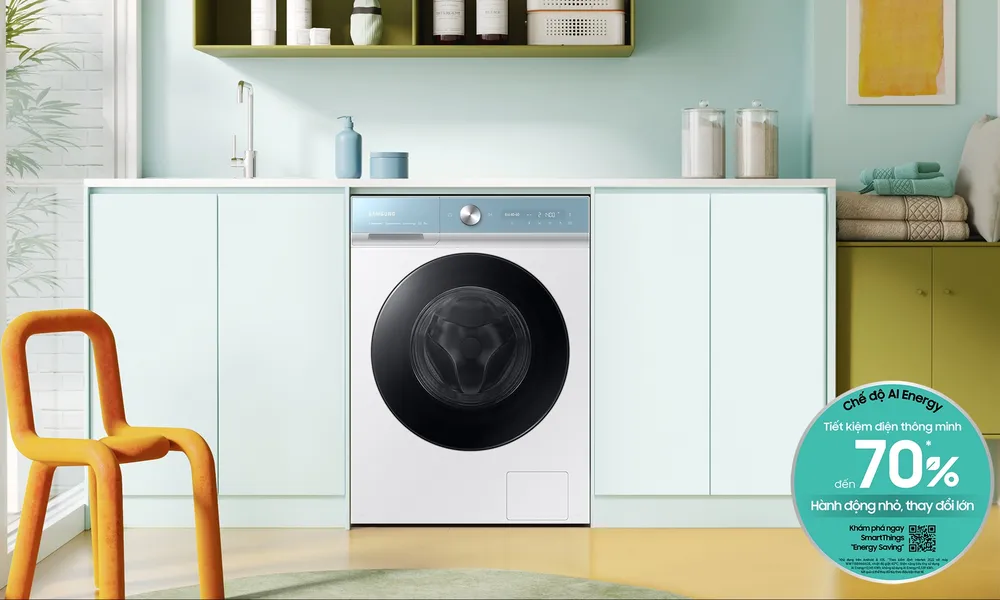 Đặc biệt, thế hệ Bespoke AI mới ra mắt 2023 có sự nâng cấp về mặt công nghệ - tích hợp thêm cảm biến chất liệu sợi vải, tự động điều chỉnh thời gian, nhiệt độ và tốc độ vòng vắt phù hợp, giúp bảo vệ sợi vải tốt hơn 45%, đồng thời tiết kiệm 70% điện năng.