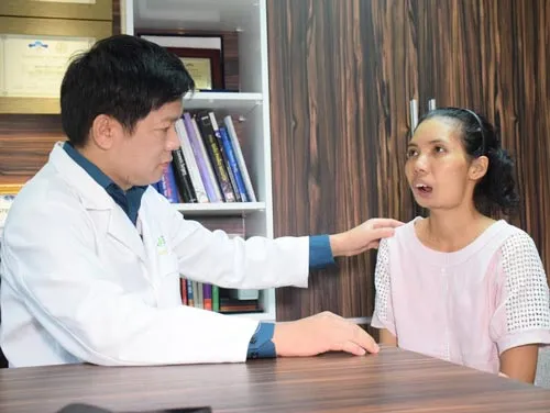 TS-BS Nguyễn Phan Tú Dung và bệnh nhân H Nanh Niê trước khi phẫu thuật
