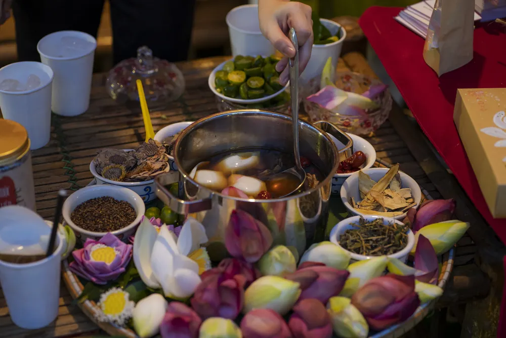 Tại chợ Đông Ba (TP Huế), ngoài thưởng thức, du khách còn mua về những sản phẩm tinh túy, đậm nét văn hóa của vùng đất Cố đô như trà Cung đình, nón lá bài thơ, mè xửng, mắm ruốc, sen khô, phấn nụ…