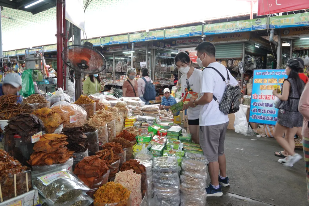 Còn tại TP Đà Nẵng, lượng du khách ghé đến mua sắm đặc sản, hàng lưu niệm, thực phẩm chế biến ở chợ Cồn và chợ Hàn (quận Hải Châu) rất đông. Dù là buổi trưa, các quầy hàng bán đồ thực phẩm, hải sản chế biến, nông sản… tấp nập từng nhóm người đến mua về làm quà.