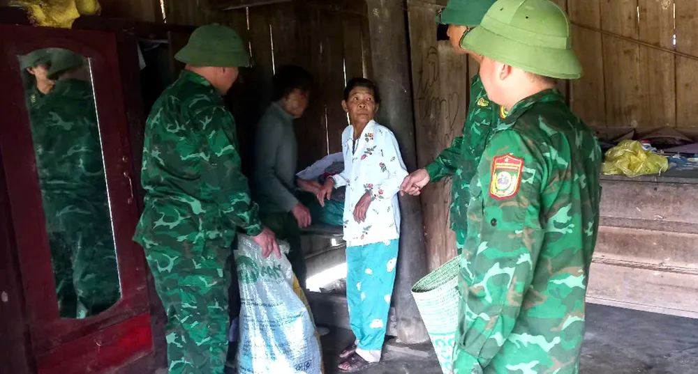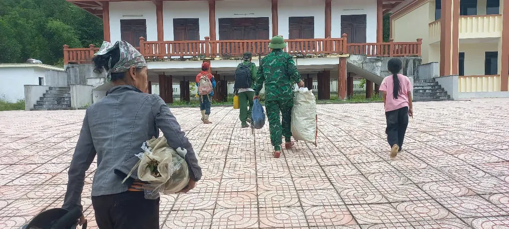 Bộ đội còn trực tiếp xuống tận thôn xóm, hỗ trợ dân chằng chống nhà cửa, di dời tài sản. Bà Nguyễn Thị Bông, tổ dân phố Hòa Duân, xúc động: “Nhờ có bộ đội biên phòng giúp, bà con an tâm hơn rất nhiều”.
