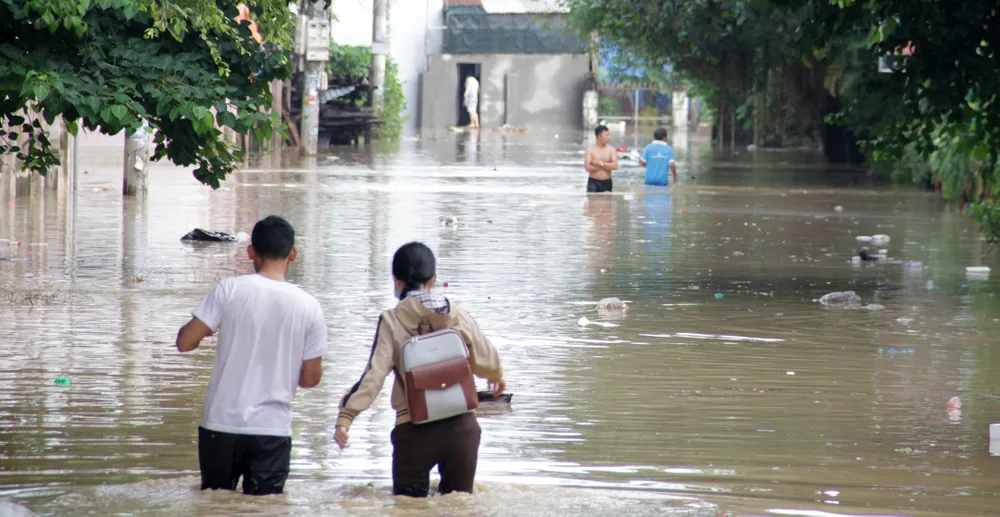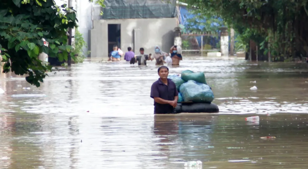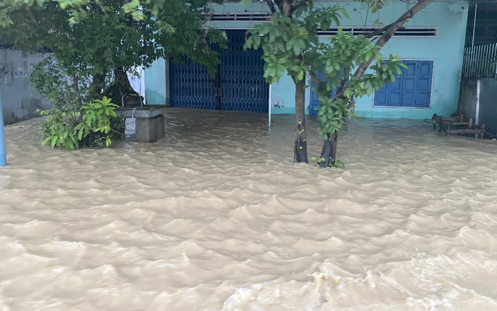 Mưa lũ đã gây ngập xã Bình Dương, huyện Bình Sơn, tỉnh Quảng Ngãi, đây là hạ nguồn sông Trà Bồng