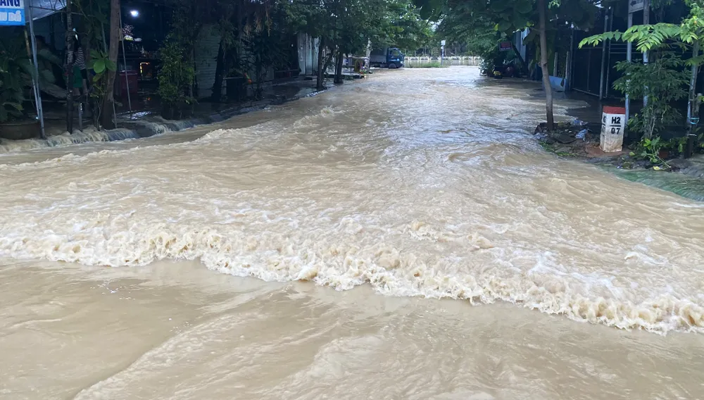Mưa lũ khiến nước sông dâng cao, chảy xiết trong những ngày qua tại Quảng Ngãi