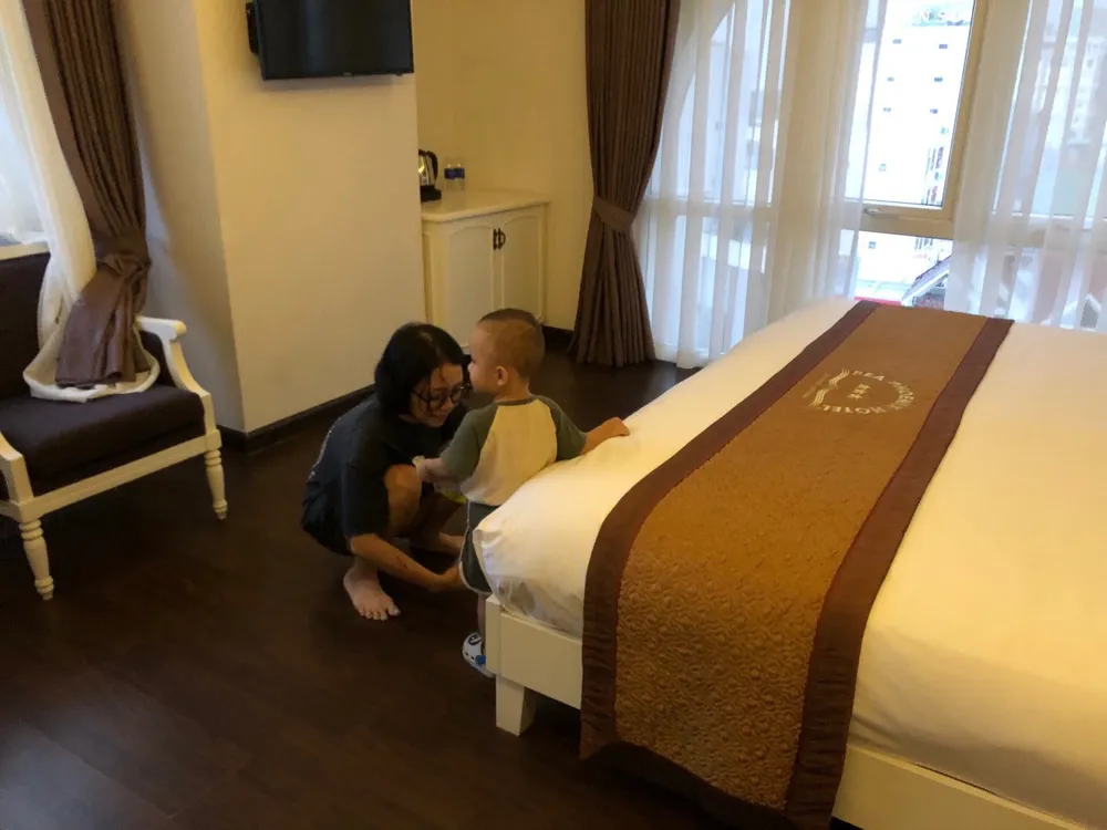 Ôm balo áo quần cùng 4 bạn ở trọ đến xin ở miễn phí tại khách sạn, em Nguyễn Thị Nhàn, sinh viên Đại học Duy Tân cho biết, bão lớn, ở trọ không an toàn nên tụi em qua đây xin trú ẩn. “Hạnh phúc lắm! Trú bão mà được khách sạn bố trí cho 1 phòng có 5 giường sạch đẹp, tiện nghi", em Nhàn nói.