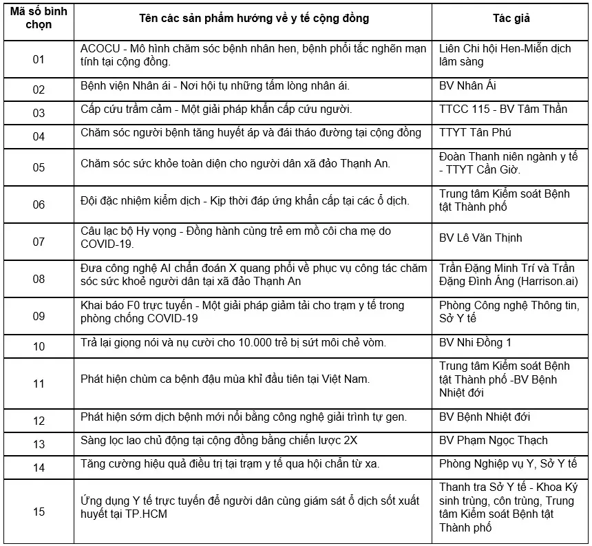 Hoặc bình chọn qua mạng xã hội Facebook Thành tựu y khoa Việt Nam. Mỗi tài khoản có thể bình chọn cho nhiều đề cử. Thời gian bình chọn từ 15 giờ ngày 8-2 đến 15 giờ ngày 14-2.