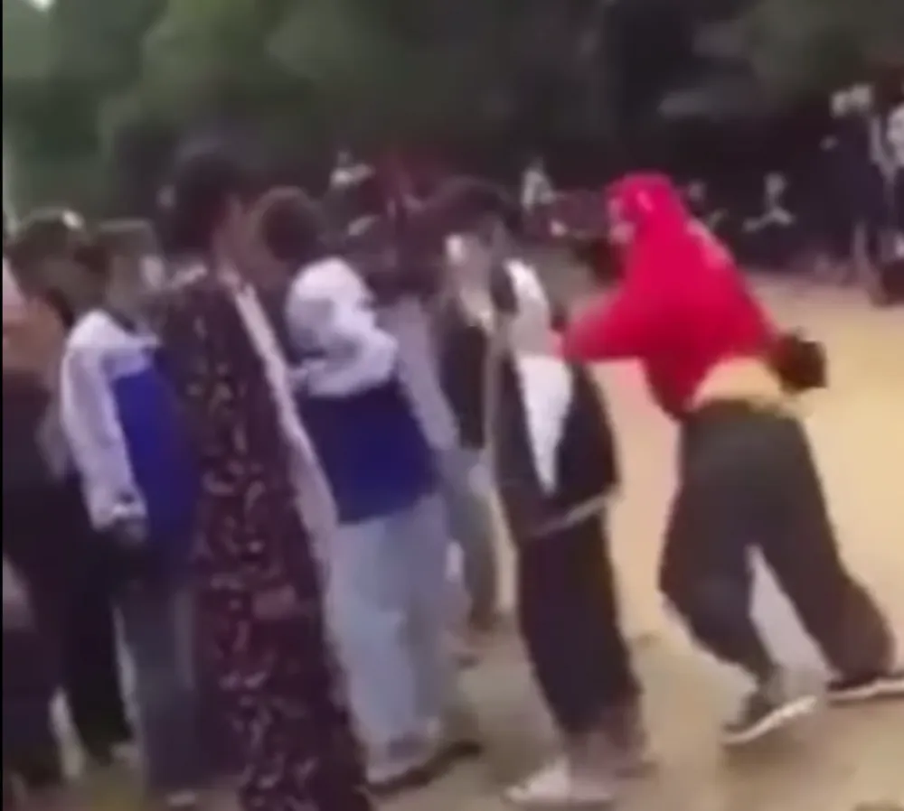 Đoạn clip cho thấy, sau một vài câu nói chuyện, nữ sinh mặc áo khoác màu đỏ đã dùng mũ bảo hiểm đánh liên tiếp vào một nữ sinh khác; sau đó 2 nữ sinh mặc áo đồng phục tiếp tục lao vào đánh “hội đồng”. Lúc này có nhiều học sinh vây quanh nhưng không ai can ngăn mà còn hô hào, kích động, dùng điện thoại quay lại.