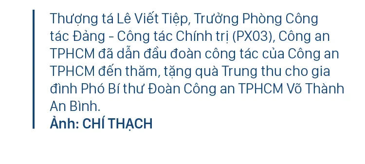 Thượng tá Lê Viết Tiệp, Trưởng Phòng Công tác Đảng - Công tác Chính trị (PX03), Công an TPHCM đã dẫn đầu đoàn công tác của Công an TPHCM đến thăm, động viên gia đình đồng chí Võ Thành An Bình, Phó Bí thư Đoàn Công an TPHCM.