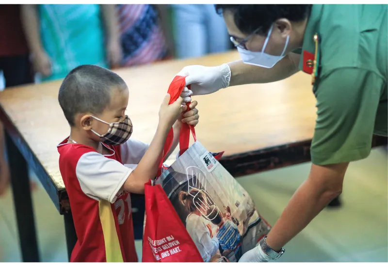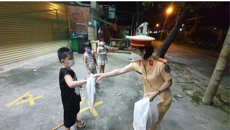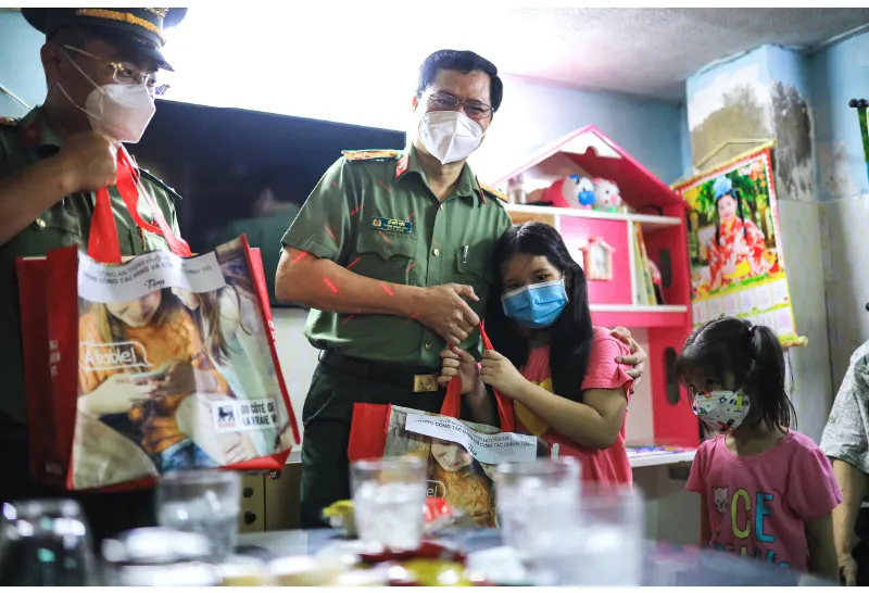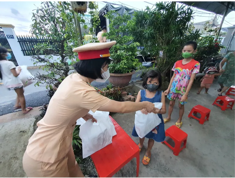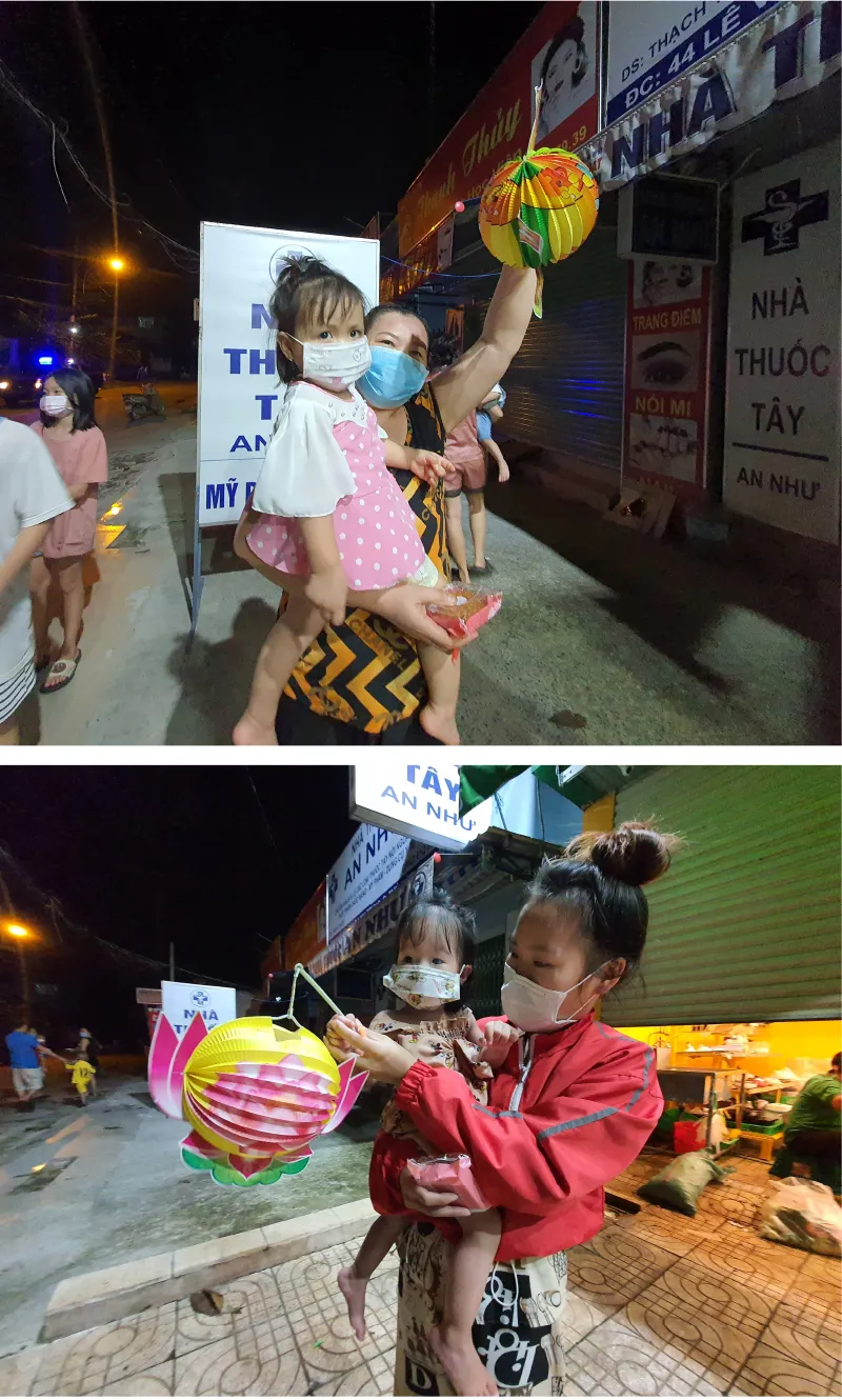 Trước Trung thu ít ngày, từ ngày 17 đến 20-9, nhiều đoàn của Công an TPHCM đã mang không khí Trung thu tới con em cán bộ chiến sĩ ngành công an và trẻ em mồ côi, khó khăn ở các mái ấm, nhà trọ, các bệnh viện dã chiến ở Củ Chi, Nhà Bè, phường Tân Phong (quận 7) và một số khu cách ly tại huyện Bình Chánh.