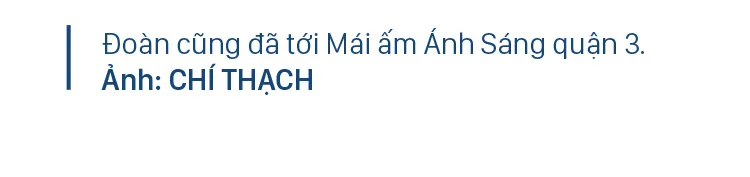 Tiếp đó, đoàn cũng đã tới Mái ấm Ánh Sáng quận 3 nằm trong con hẻm đường Trần Quang Diệu, phường 14, quận 3. Do con hẻm nhỏ nên các thành viên trong đoàn xách từng phần quà vào trong để trao tận tay cho các cháu.