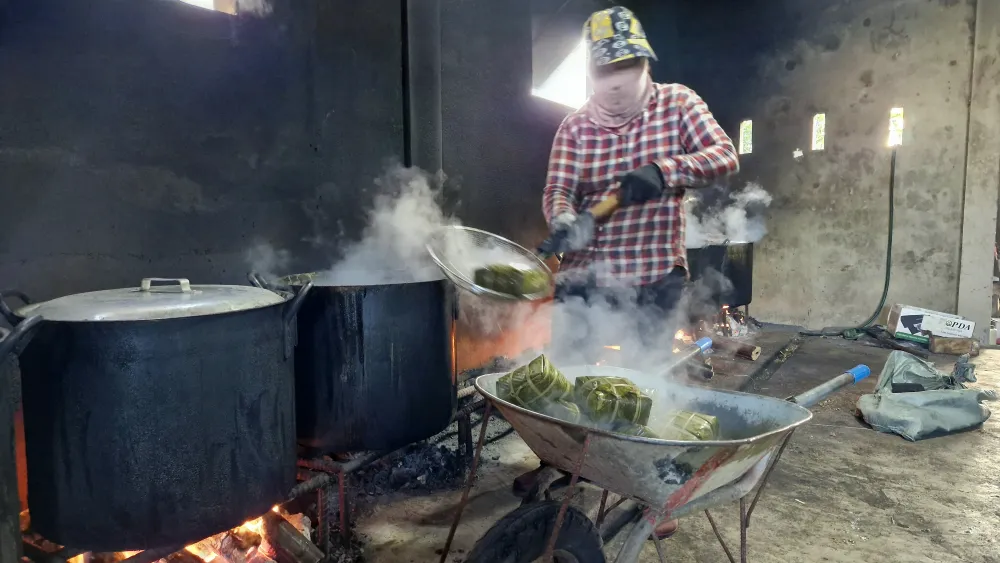 >> Video Người dân làng Đại An Khê hối hả gói nấu bánh chưng, bánh tét mặt trăng phục vụ thị trường Tết Ất Tỵ