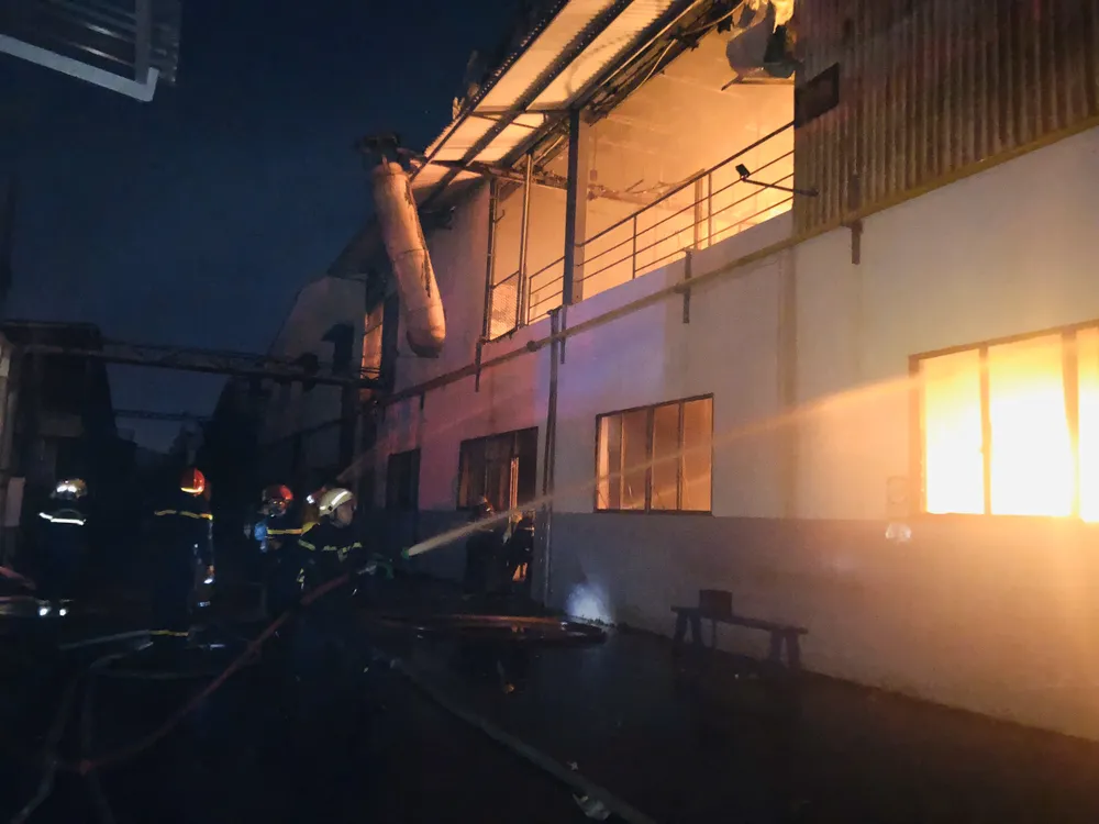 Đến 20 giờ 10 cùng ngày, ngọn lửa được khống chế; 800m²/1.440 m² diện tích của xưởng xi mạ kim loại bị thiêu rụi.