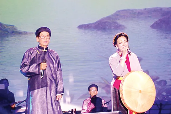 Bác sĩ, nhạc sĩ Đào Duy Anh song ca cùng ca sĩ Ngọc Yến bài “Tát nước đầu đình” do ông sáng tác. Ảnh: T.L.