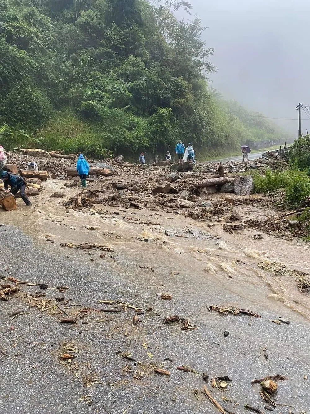 Quốc lộ 32 qua tỉnh Yên Bái cũng bị tê liệt hoàn toàn tại đèo Khau Phạ (Mù Cang Chải) khi 500m3 đất đá sạt xuống lấp kín mặt đường.