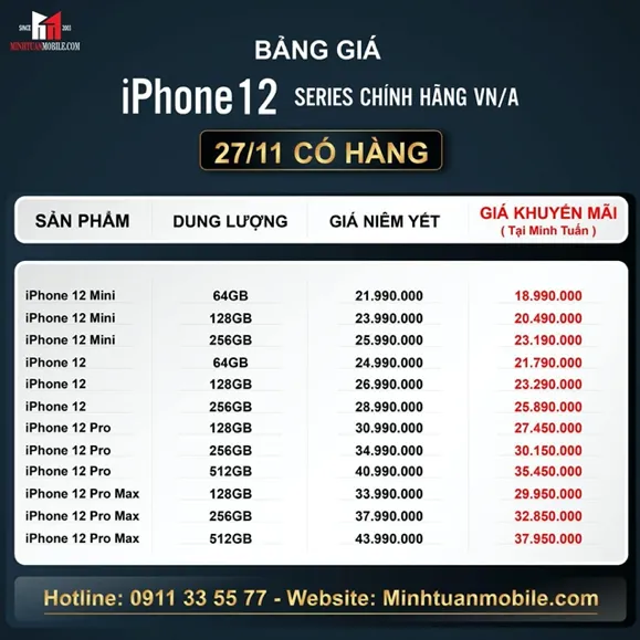Giá bán/đặt trước iPhone 12 tại Minh Tuấn Mobile