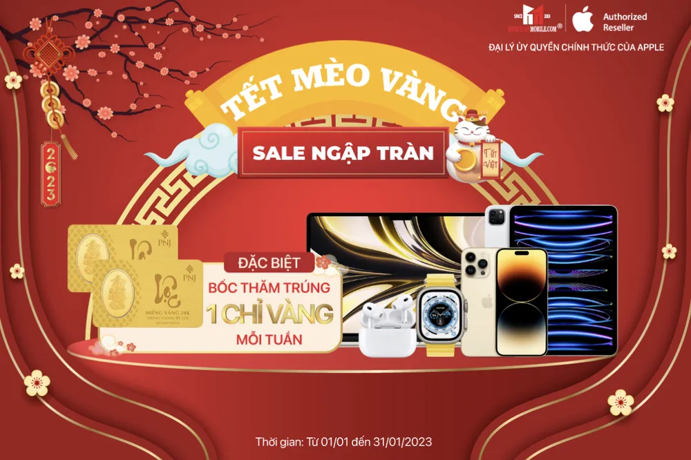 Mùa Tết Nguyên đán tới gần cũng là lúc nhiều nhà phân phối, bán lẻ tung ra ưu đãi để phục vụ người dùng mua sắm Tết. Trong đó, Minh Tuấn Mobile - Đại lý ủy quyền chính thức của Apple tại Việt Nam đã chính thức công bố chương trình "Tết Mèo Vàng - Sale Ngập Tràn" với nhiều khuyến mãi giá trị.
