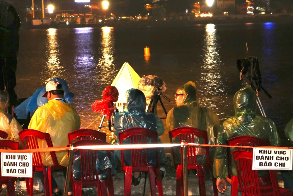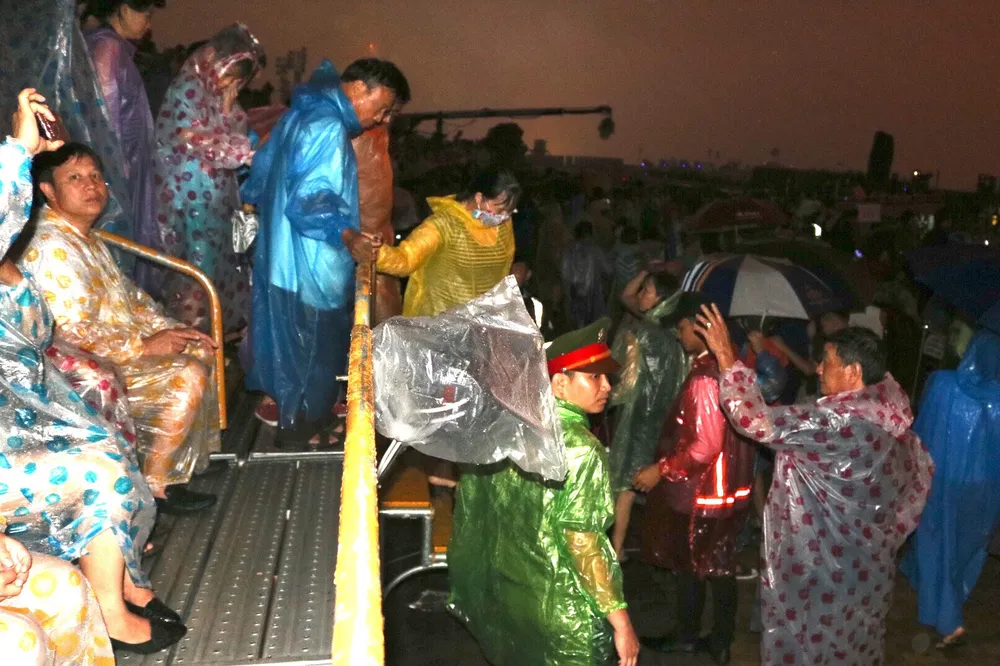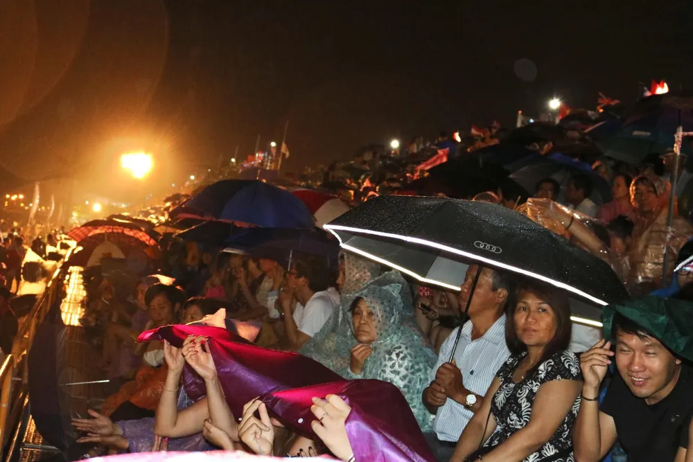Mưa lớn, nhiều khán giả xem pháo hoa bỏ về sớm.