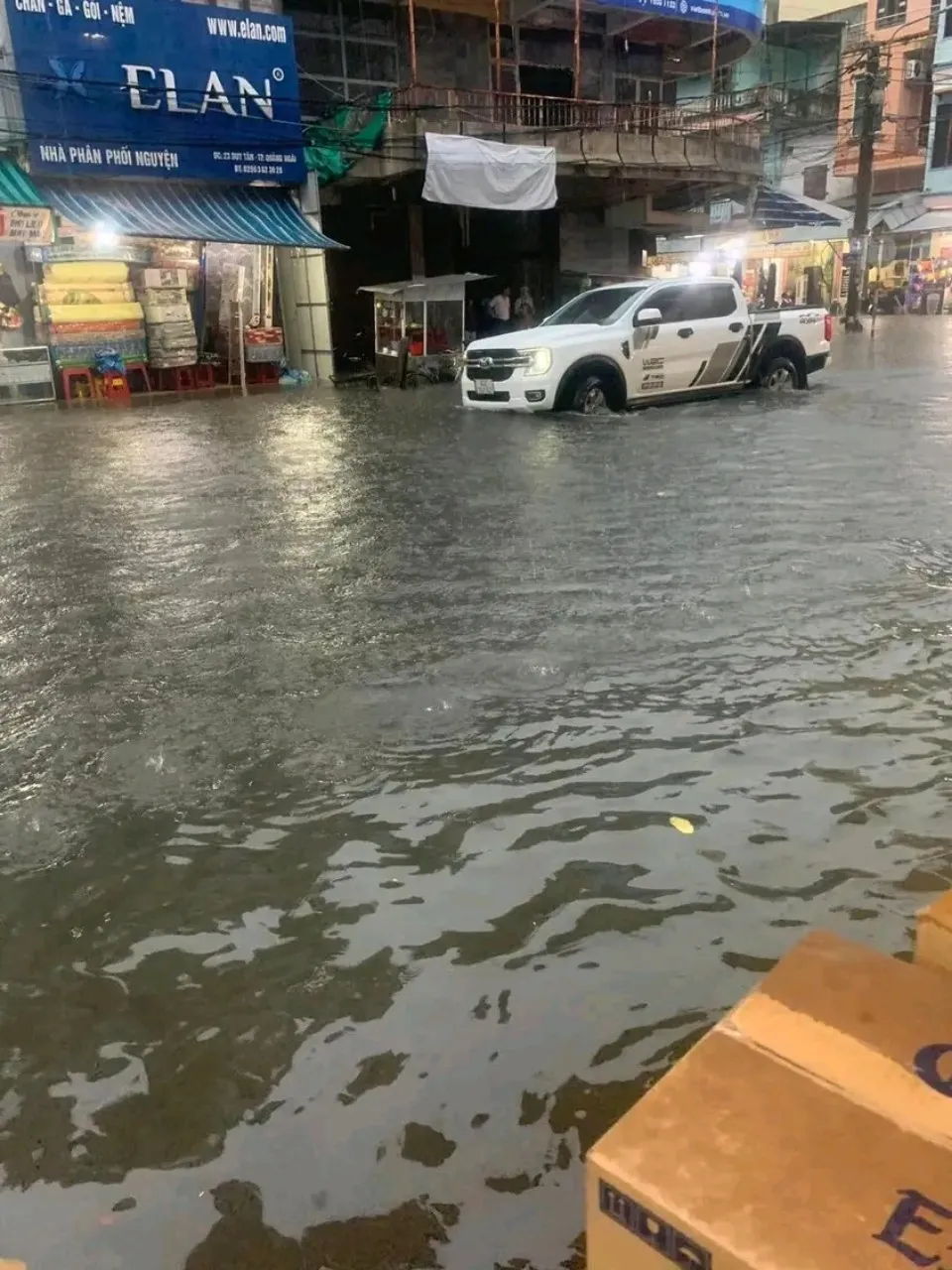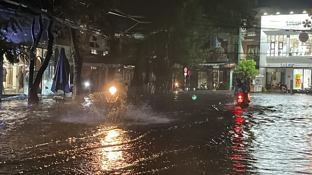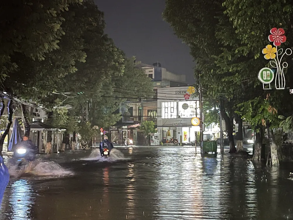 Mưa lớn làm nhiều tuyến đường ở TP Quảng Ngãi ngập từ 20-60cm, các tuyến nội đô như Trương Định, Trần Hưng Đạo, Hùng Vương, Nguyễn Tự Tân,… bị ngập sâu. Lượng mưa cao nhất là 128,8mm.