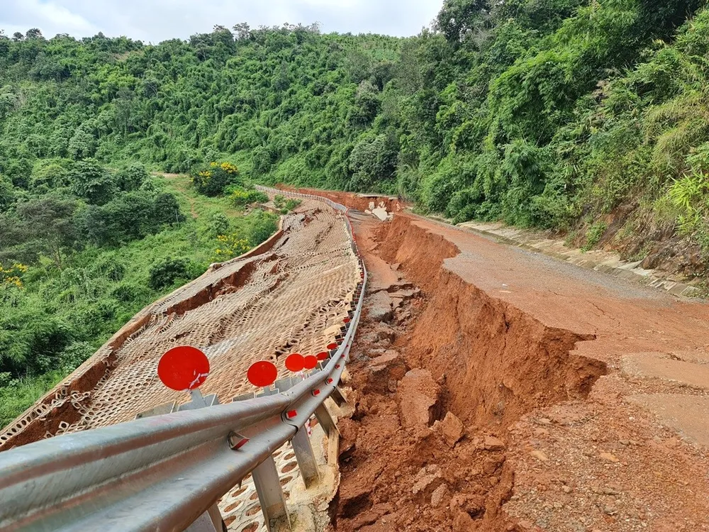Mưa lớn kéo dài, đường 27 tỷ đồng chưa bàn giao đã sạt lở nghiêm trọng