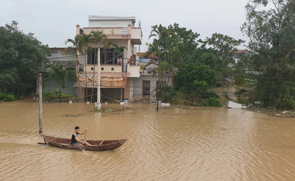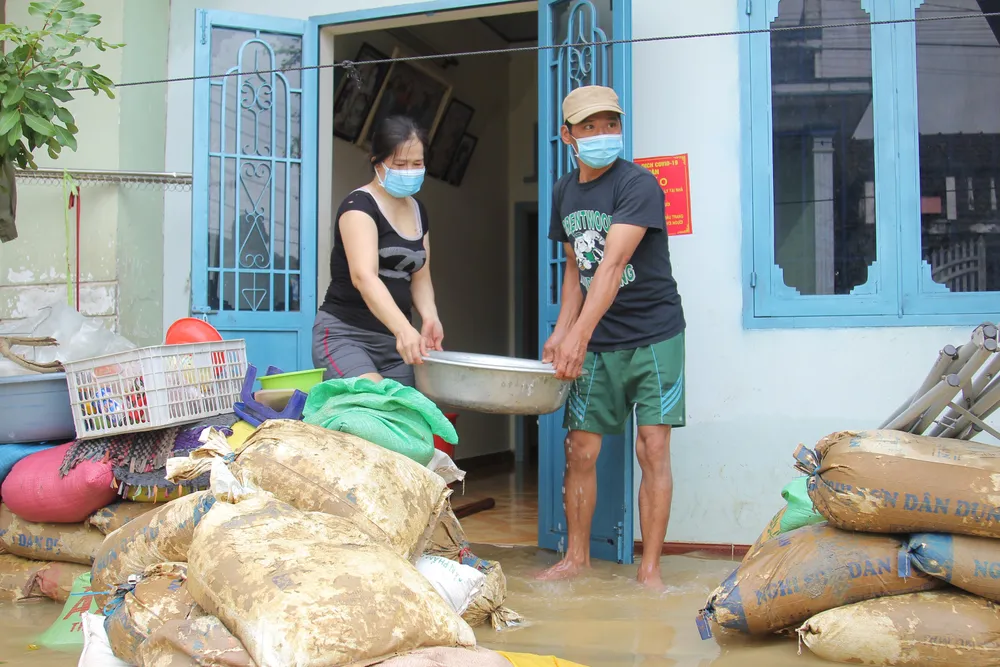 Tại xã Phước Thuận, “rốn lụt” Phổ Trạch vẫn đang rút lũ, nhà dân "ló dạng" sau nhiều ngày chìm trong biển nước. Từ sáng cùng ngày, chính quyền xã Phước Nghĩa, huyện Tuy Phước đã huy động lực lượng, phương tiện vào các vùng nhà dân ngập lũ để tiếp lương thực, nước uống cho người dân.